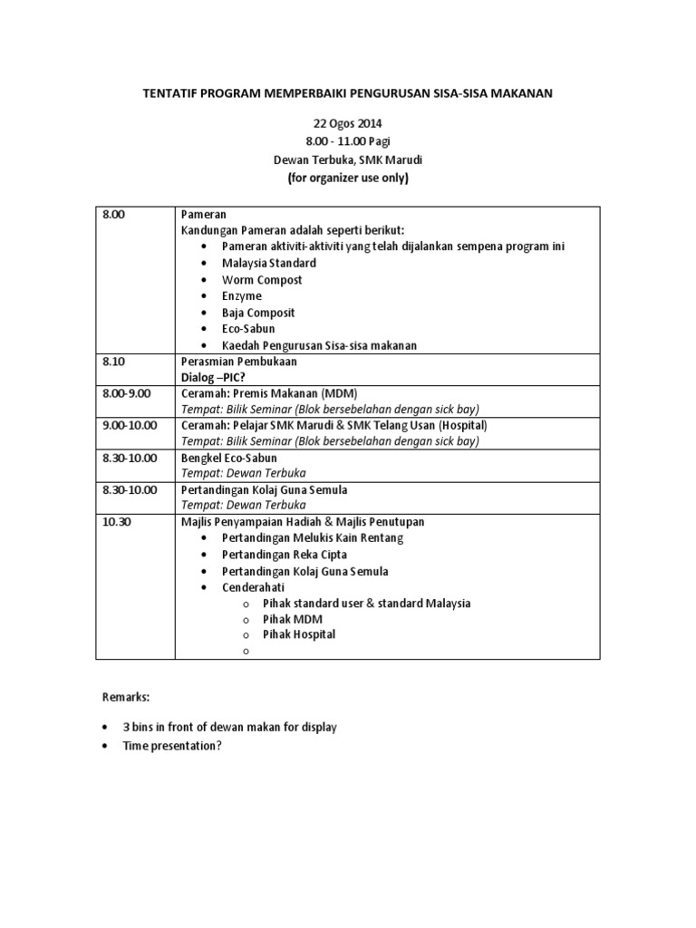 Jam 600 700 persiapan makan malam. Asas tentatif program adalah bertujuan untuk memberikan pendedahan menyeluruh kepada bakal penganjur kem-kem motivasi. Jam 300 500 petang sukaneka.