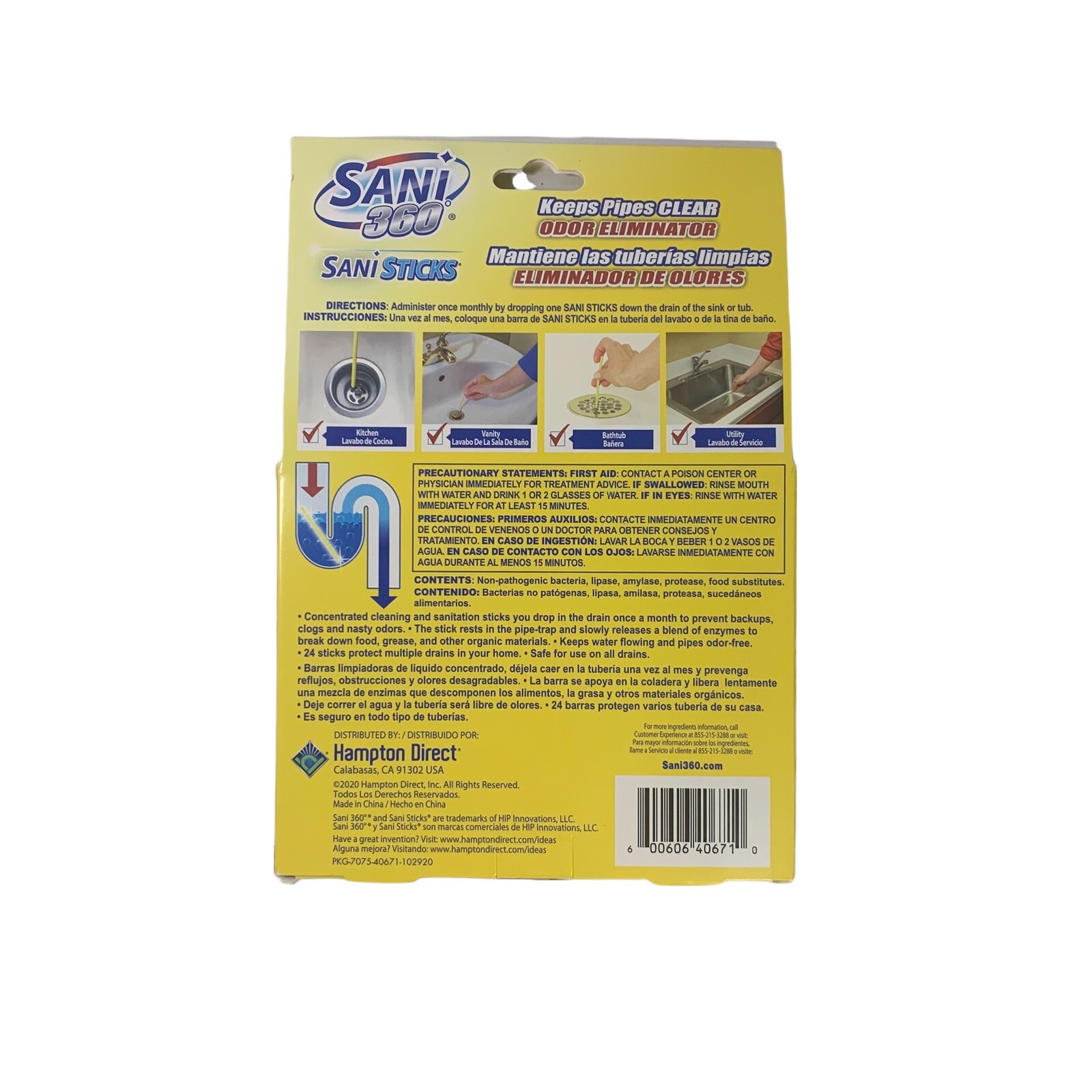 Buy Sani 360 Sani Sticks Drain Cleaner And Deodorizer Non Toxic Enzyme Formula To Eliminate Odors And Helps Prevent Clogged Drains Septic Tank Safe 24 Count Unscented Online In Saint